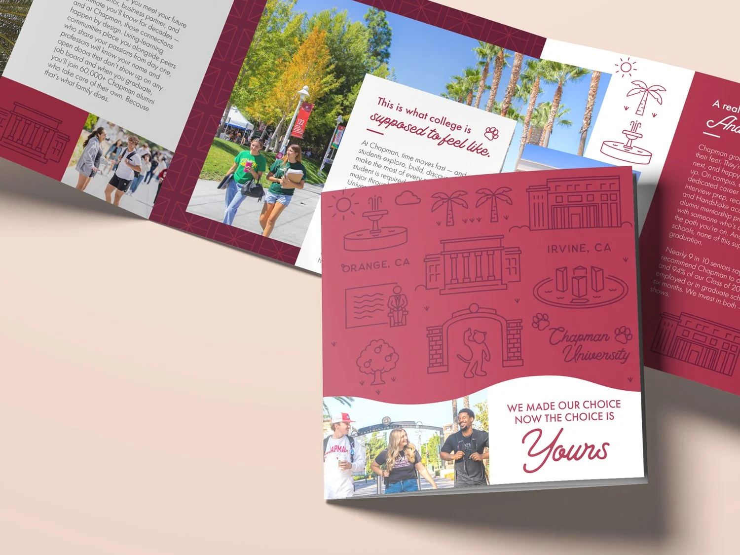 Developed cohesive branding systems for high-profile campus events for Chapman University, including typography, color palettes, and key visual assets. Applied branding across digital, print, on-brand marketing materials, and environmental touchpoints. Designed a university-wide illustrated icon library aligned with brand standards.